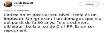 Puigdemont. La imagen ya repetida, no puede sino recordar las manifestaciones endogámicas y centrípetas que a veces celebran las tribus. Ombliguismo llevado al extremo en el lugar donde las fronteras se difuminan y se abolen. Algo así como celebrar una misa negra en una catedral. |